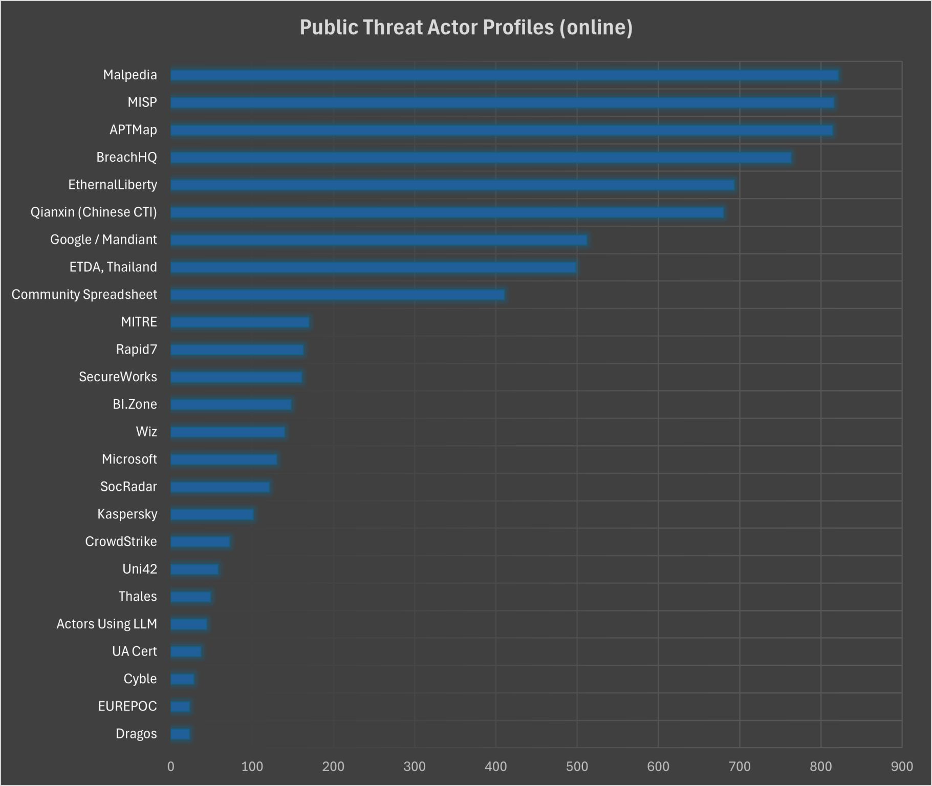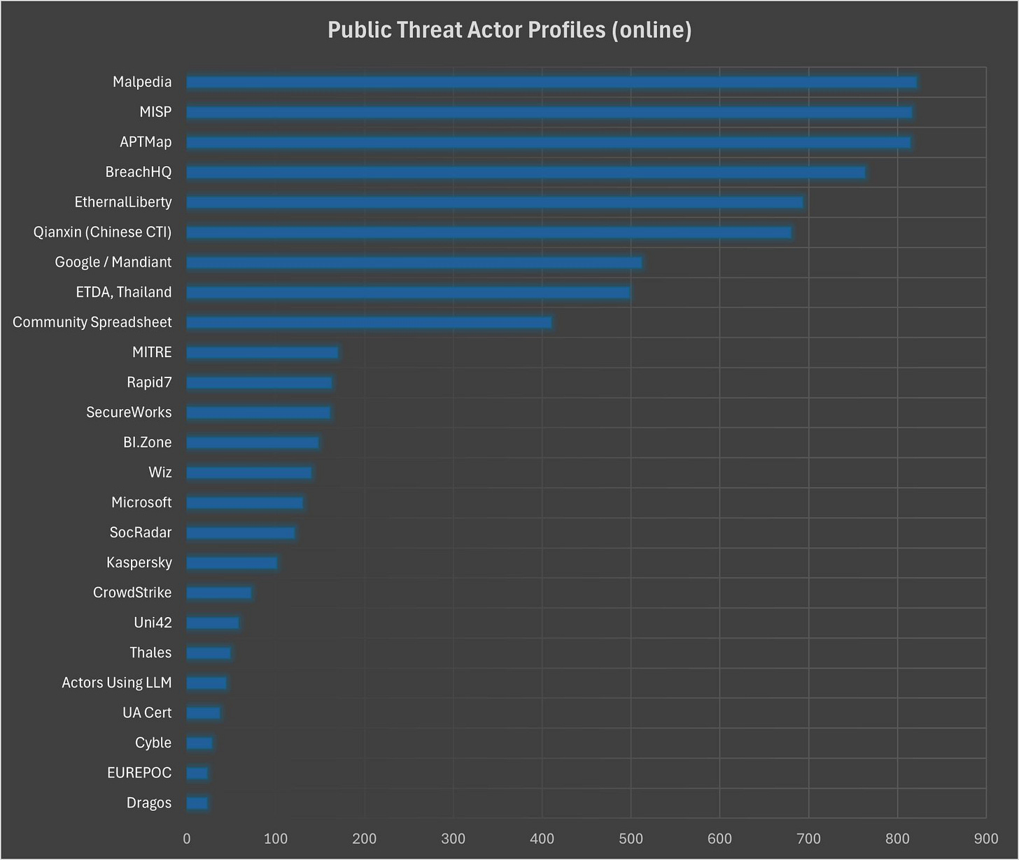 Yury analyzed how many unique threat actor profiles each data source on the list has.