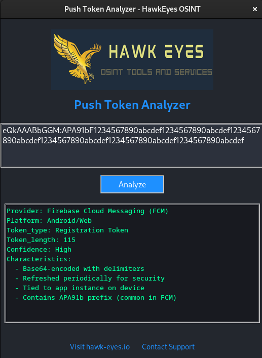Push tokens are unique identifiers assigned to mobile devices by notification services (Apple APNs, Google FCM). In OSINT investigations, these tokens can be found in leaked databases, app logs, or through device forensics. Analyzing push tokens can help link devices to specific users, identify the type of device, or correlate activity across multiple platforms.