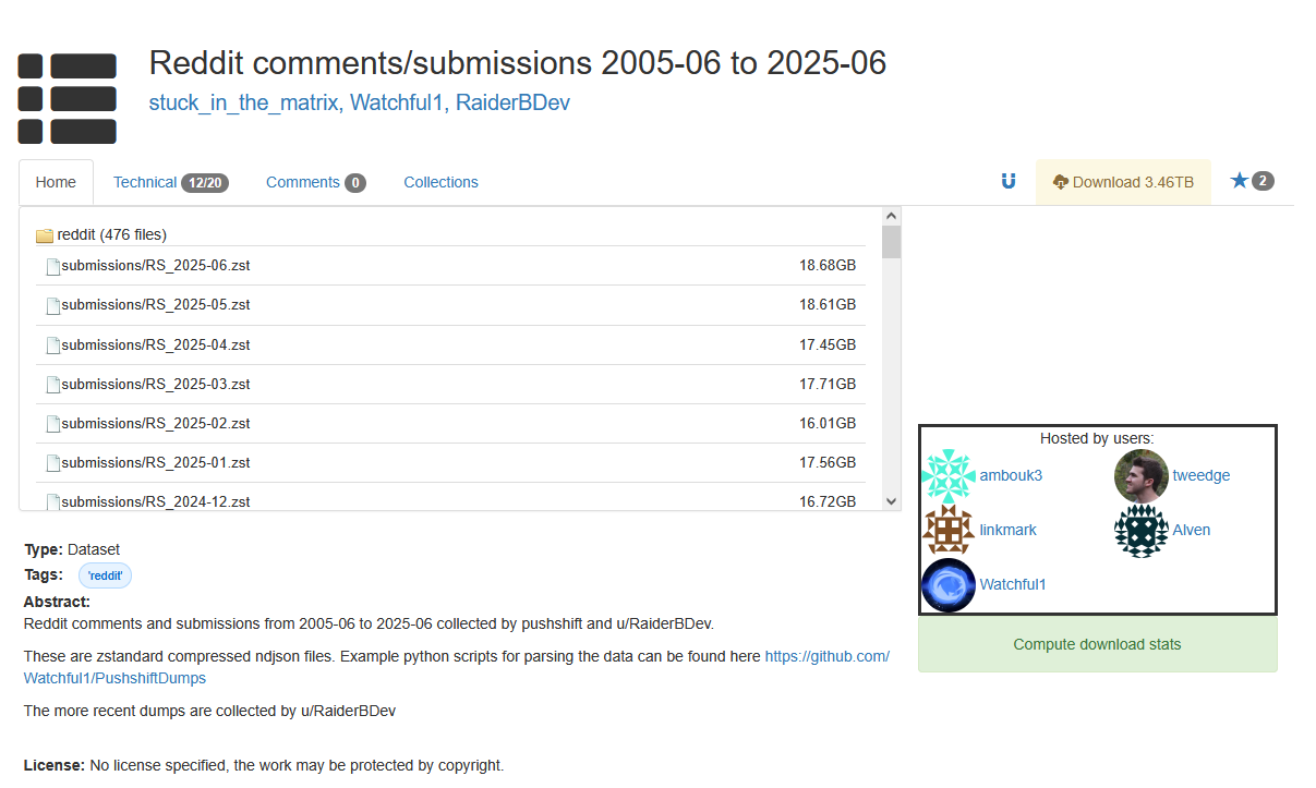 📌 Massive New Reddit Dataset, Scrape of 99% of Reddit, 3.46 TB in size!