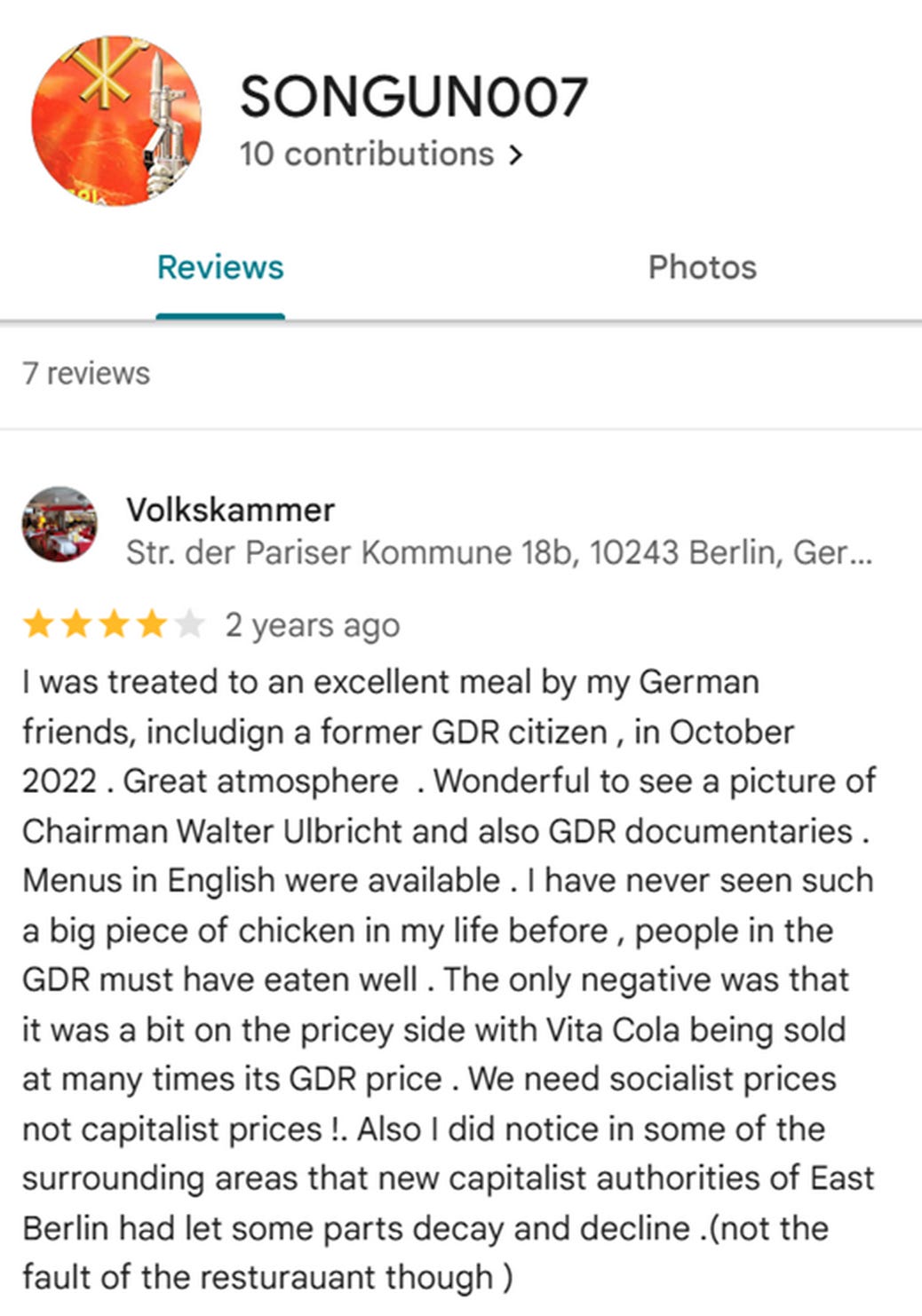 Hudson traveled abroad extensively, including to Germany and North Korea. He ate at a German Democratic Republic (GDR)-themed restaurant called VolksKammer during a trip to Berlin, Germany, in 2023. Hudson wrote a Google review, under the username Songun007, about the restaurant and gave four stars. He praised the meal's portions, stating that “I have never seen such a big piece of chicken in my life people in the GDR must have eaten well.” However, he did complain about the meal’s cost, specifically of Vita Cola. Hudson also stated that Germany needed socialist prices and that the capitalist authorities in East Berlin allowed the area to decay.